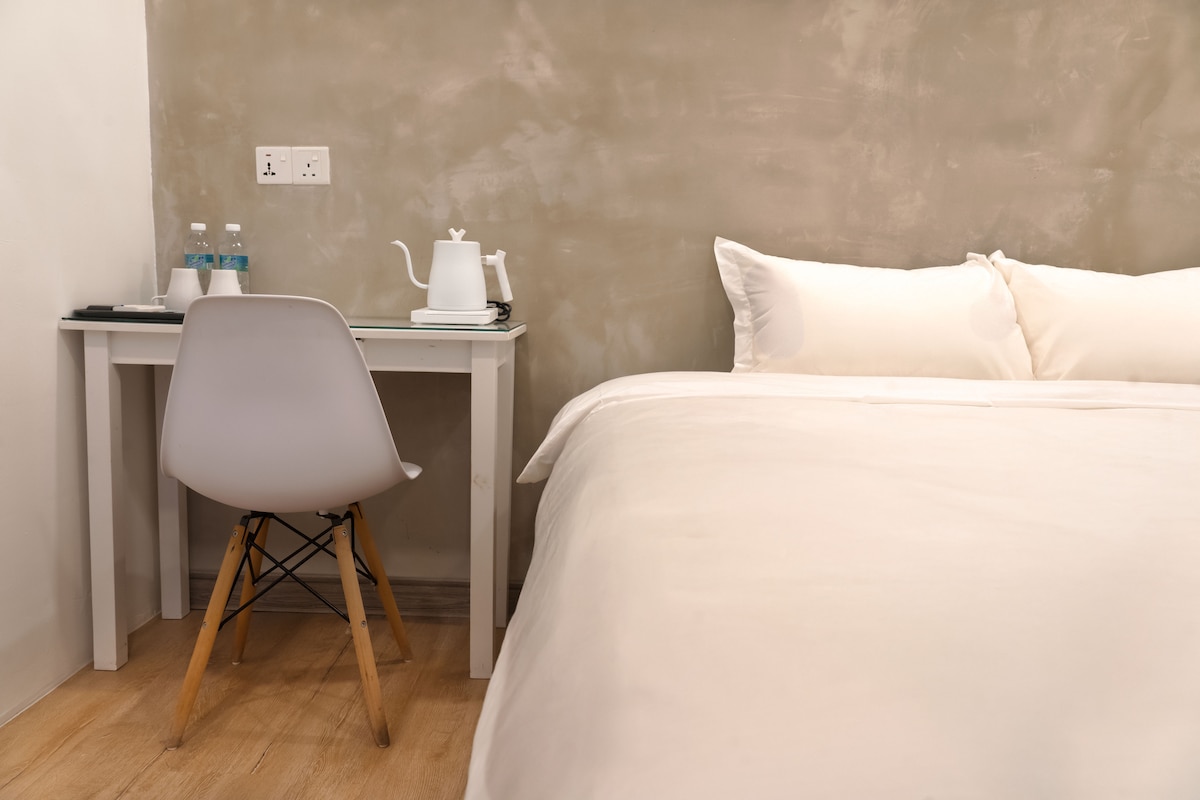 Camera da letto matrimoniale completamente arredata con aria condizionata (a pagamento). Goditi un angolo cottura attrezzato, un'accogliente sala e un'area lettura. 📍 Posizione privilegiata: ✔ MMU (0,5 km) | Bukit Beruang Town (1 km) | AEON (1,5 km) ✔ Mydin (2 km) | Aeroporto (2,5 km) | Pedaggio Ayer Keroh (5 km) ✔ Vicino a cliniche, caffetterie, palestra e negozi Tariffe 💰 orarie, settimanali e mensili disponibili: perfette per studenti e soggiorni di transito. Prenota ora!