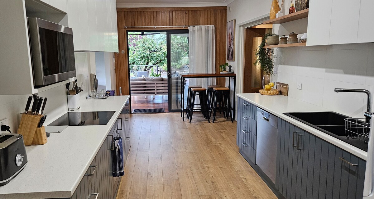 Benvenuti all'Altura Apartment, un moderno spazio indipendente nel centro di Bright. Ideale per le coppie che desiderano esplorare o rilassarsi. L'appartamento comprende una spaziosa camera da letto, un bagno separato e una cucina completa con zona pranzo. La sua posizione elevata offre una vista sul tramonto su Bright e sulle montagne. Una breve e facile passeggiata di cinque minuti attraverso la passerella del fiume Ovens conduce ai negozi di cibo, vino e boutique di Bright. Gli ospiti possono usufruire di ingresso privato, parcheggio e accesso al cortile.