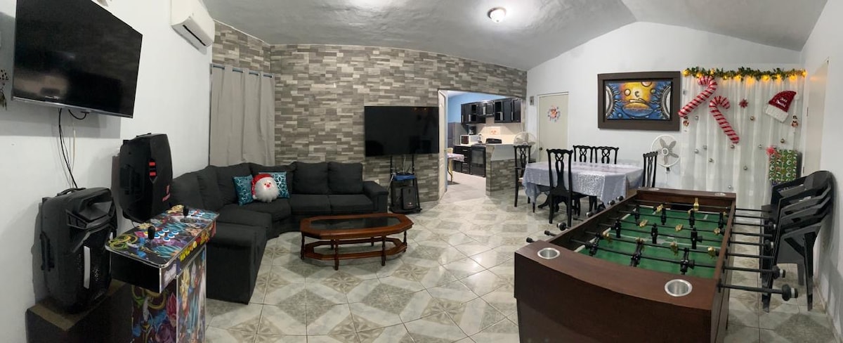 Disfruta de esta casa con accesos y salidas muy fáciles a cualquier parte de la cd., ubicada a 6 min. del aeropuerto, a 5 min. del libramiento poniente, a 3 min. de la av. tampico-mante, a 15 min. del corredor industrial de Altamira, a 25 min. del centro histórico , a 20 de la playa miramar, cerca de tiendas (oxxo, soriana, waltmar,etc) cuenta con estmiento. privado para 2 autos, 2 1/2 baños, cocina equipada, tv con cable e internet, jardín con asador,hamaca y mesa de jardin