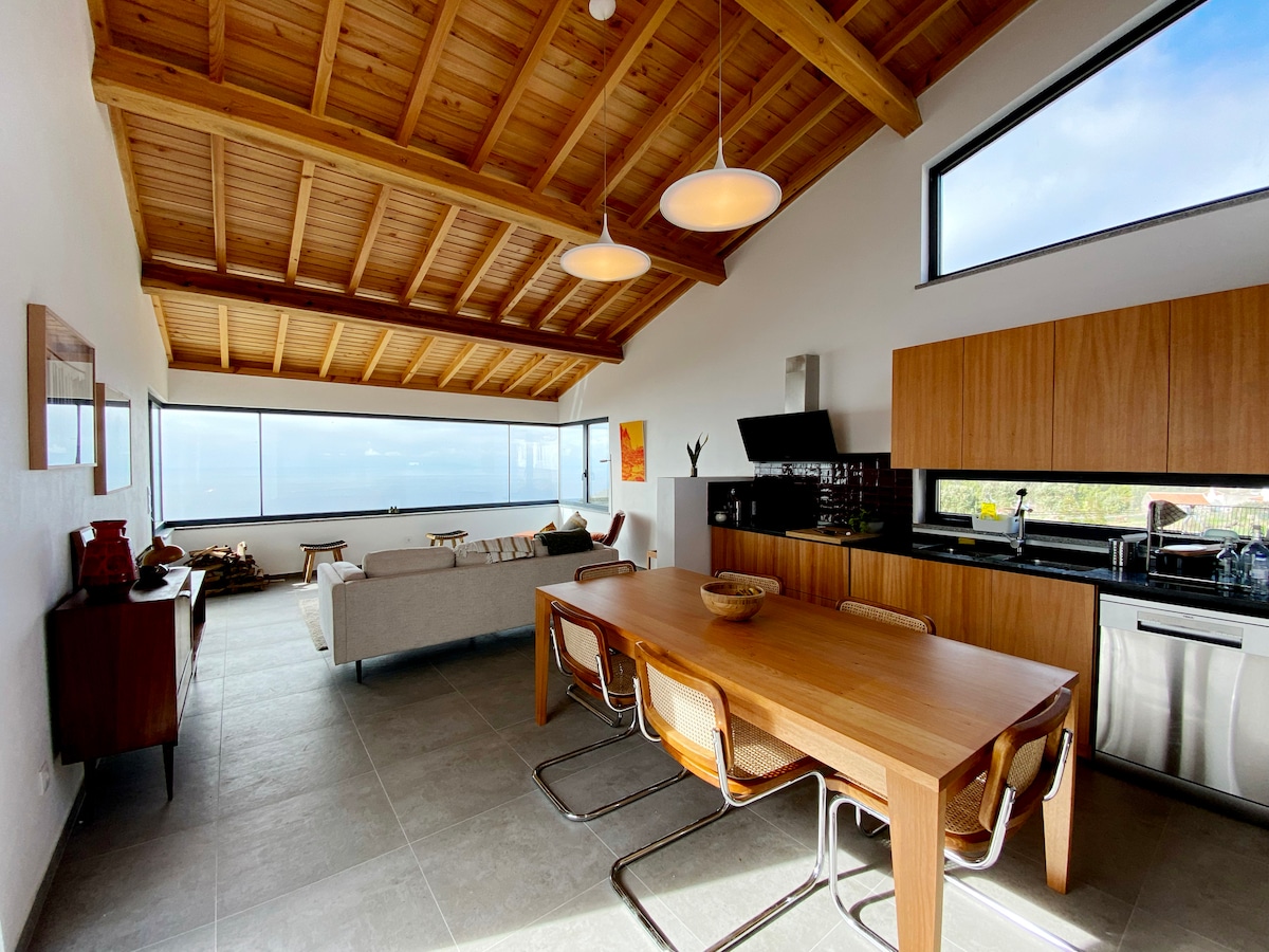 Recently rebuilt house, located in one of most beautiful bays in the Azores. Nestled on the slope of the Quatro Ribeiras, it offers a unique view of both the sea and the rocky escarpment of the bay. Fully equipped with two bedrooms (one suite), two bathrooms, an open concept kitchen and living room, heating stove, balcony and outside space with barbecue and fire pit. Free private parking. Clean and Safe seal. Get ready for an unforgettable stay!