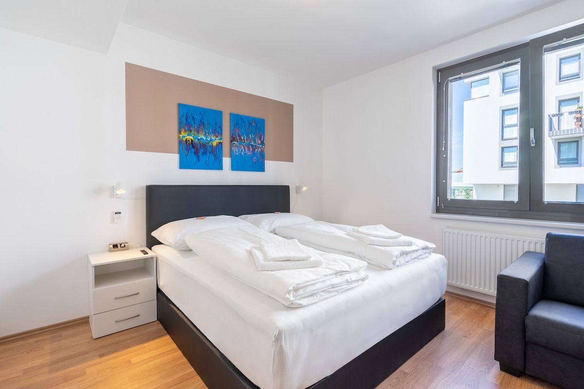 Enjoy a stylish experience at this fully furnished apartment located in the most beautiful part of the 22nd district. Our 50m2 apartment on Wagramerstrasse is 2 min walking distance from the metro station U1 Kagran which connects you to Vienna's city center within 10 min. You can enjoy a walk by the nearby lake or simply go swimming at the Old Danube which is just around the corner. the Donauzentrum mall for a shopping experience is at walking distance as well.