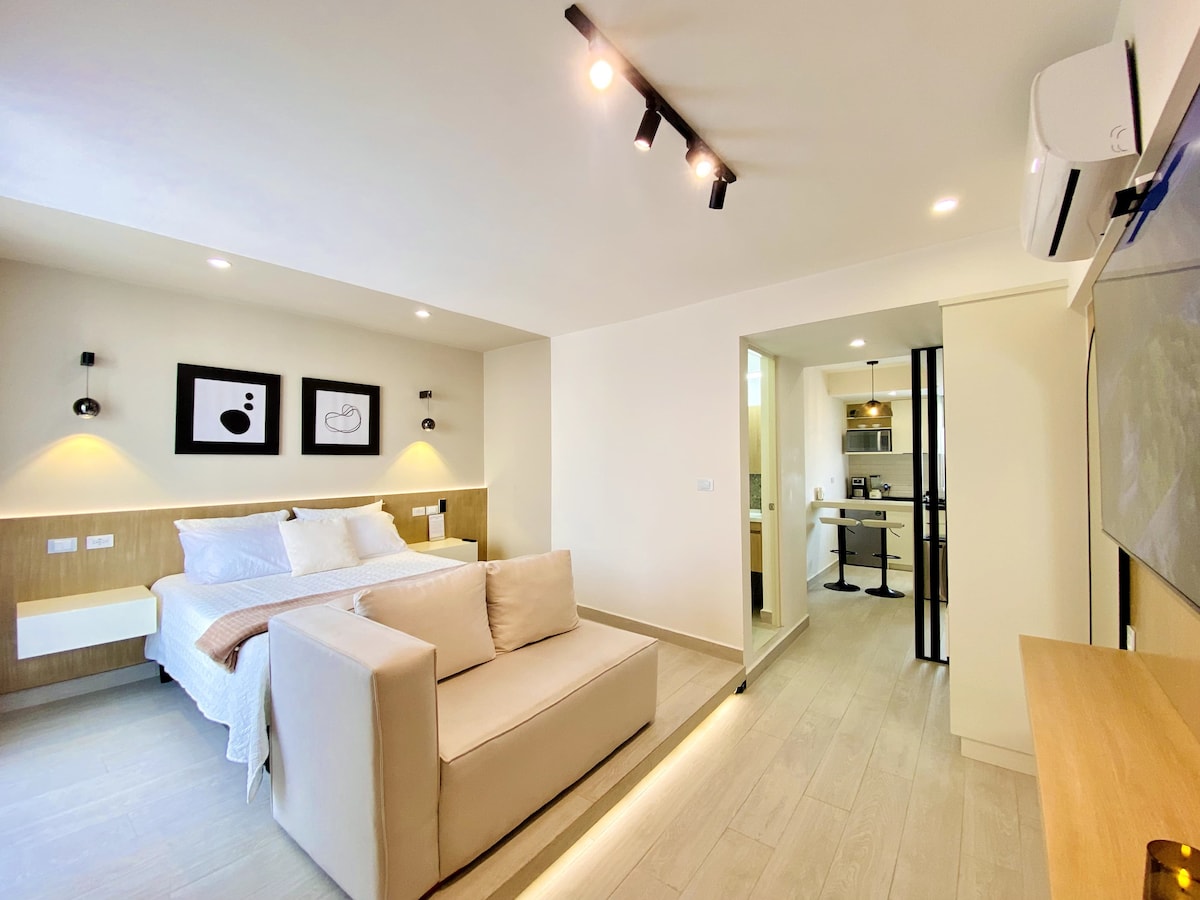 Loft executive completamente attrezzato, situato al terzo piano di un edificio nella zona UV, di fronte a La Isleta. Ottima posizione. Ideale per soggiorni brevi o lunghi. Tempo approssimativo a piedi: - 1 min dal Paseo de Los Lagos - 5 min a USBI - 10 min campus centrale della UV - 25 minuti dal centro di Xalapa. A 250 metri da Cto Presidentes, strada che collega con il resto della città e le uscite della città L'edificio dispone di un proprio parcheggio e di un accesso senza contatto.