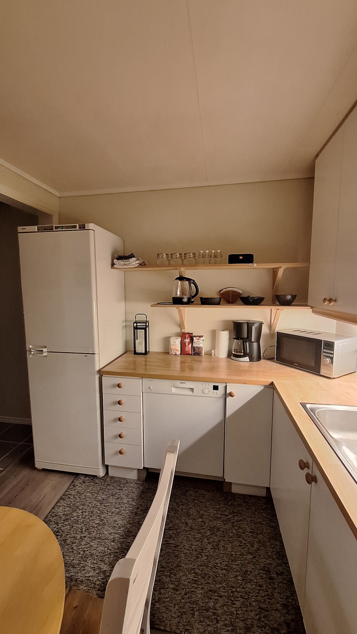 L'alloggio è situato in un ambiente rurale, a circa 35 km da Bergen. Dall'appartamento si gode di vista sulla natura e sul mare. Ci vogliono circa 10 minuti a piedi per raggiungere il mare, dove c'è la possibilità sia di nuotare che pescare. Nelle vicinanze ci sono anche ottime aree per escursioni. La distanza dal negozio è di circa 2 km, e dal ristorante e centro commerciale circa 10 km. L'appartamento seminterrato si trova in una casa colonica e ha un ingresso indipendente. L'alloggio dispone di nicchie per dormire con un letto matrimoniale e un divano letto per 1 persona nel soggiorno. WIFI disponibile. Cassetta di sicurezza all'arrivo/check-out.