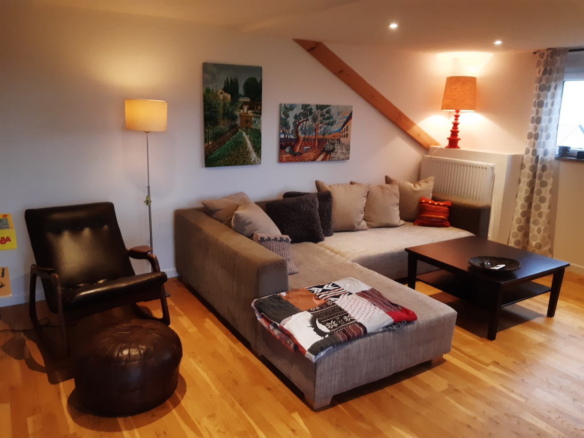 Appartamento di 50 mq al 2° piano con zona notte aperta Stufa svedese, TV, Wi-Fi Cucina con lavastoviglie e grande tavolo da pranzo Asciugamani da bagno, da mano e da cucina a disposizione Letto 1,60x2m incl. biancheria da letto posto letto aggiuntivo sul divano posto auto privato davanti alla casa Negozi in loco (EDEKA, panetteria, macelleria); locanda di campagna e pizzeria nel villaggio 50 km da Norimberga/Ratisbona; collegamento ferroviario ogni ora sentieri segnalati nella zona La pista ciclabile dei cinque fiumi passa proprio davanti alla casa
