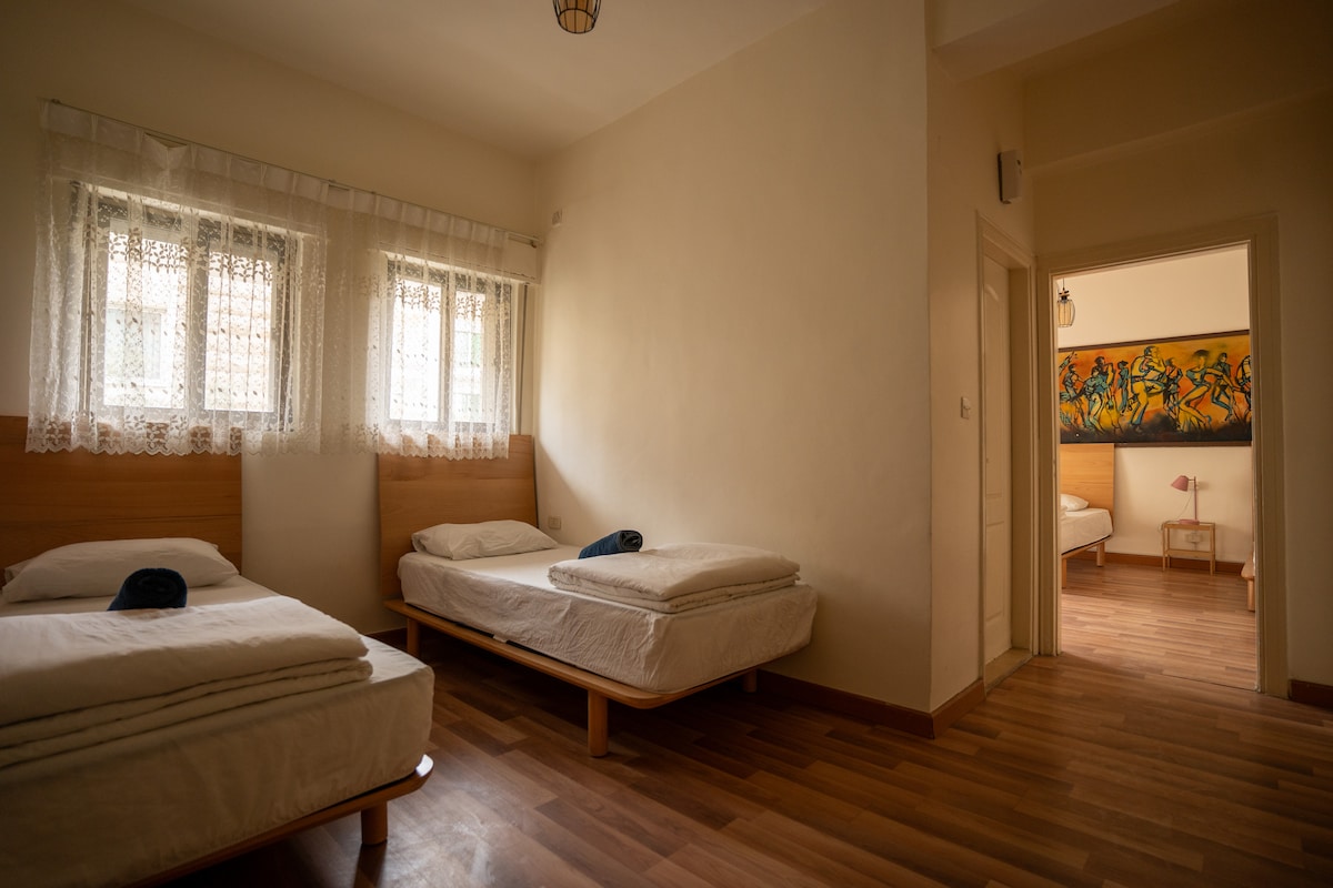 Stanza 45 – Dormitorio con 4 letti nel centro di Amman | Ostello sociale e pulito Soggiorna nel cuore di Amman, a soli 5 minuti a piedi dalla Moschea Al-Husseini, dal Teatro Romano e dalla stazione BRT. Goditi letti singoli puliti con lenzuola fresche, asciugamani e armadietti. WiFi gratuito, colazione e una sala comune per socializzare con gli altri viaggiatori. La nostra reception aperta 24 ore su 24 e i consigli locali garantiscono un soggiorno confortevole con autentiche atmosfere giordane.