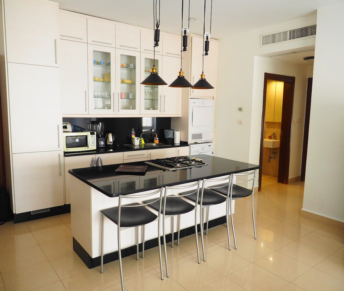 Un moderno 100 mq open space 2 camere da letto in una delle migliori aree di Amman. L'appartamento si trova in un quartiere vivace e si trova a pochi passi dall'ambasciata degli Stati Uniti - a 2 isolati dal parco e da Cozmo (negozio di alimentari). Il servizio di pulizia durante i soggiorni è disponibile a un costo aggiuntivo.