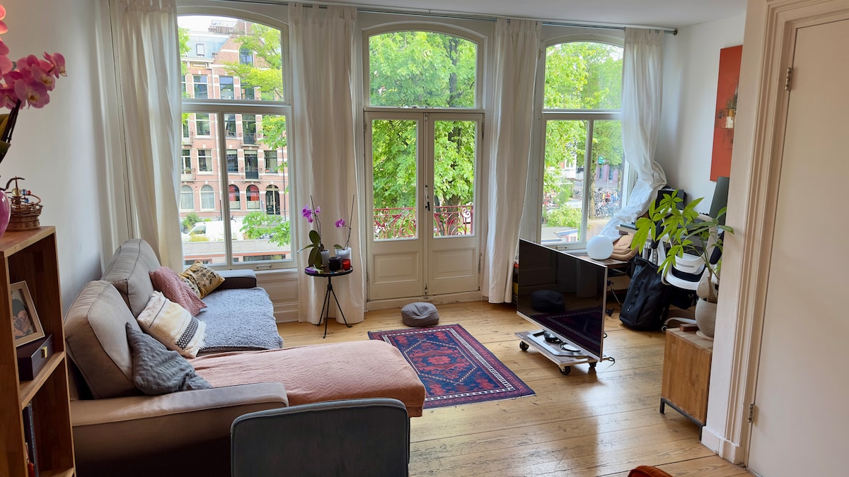 Welcome to our charming apartment in the heart of Amsterdam! We are thrilled to offer you a comfortable and unique space that is just steps away from all the must-see museums and the picturesque Jordaan neighbourhood. Our apartment boasts an incredible view over the canals, and you will have your own balcony to take it all in. With plenty of natural light streaming in from the windows reflecting on the high ceilings, you will feel right at home in this bright space.