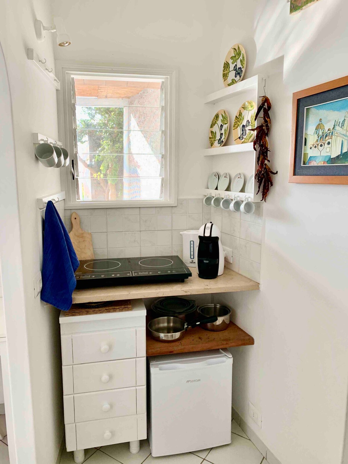 "Il Bungalow" è un alloggio accogliente e caratteristico immerso in un quartiere residenziale dove è possibile vivere una vera vita e cultura italiana e si trova a 10-15 minuti dalla piazza principale. Goditi la splendida vista sul Mar Mediterraneo dall'ampio terrazzo. Questo monolocale dispone di un piccolo angolo cottura dotato di un piccolo frigorifero e di una stufa elettrica, mentre il bagno è dotato di doccia. L'appartamento è attrezzato con aria condizionata.