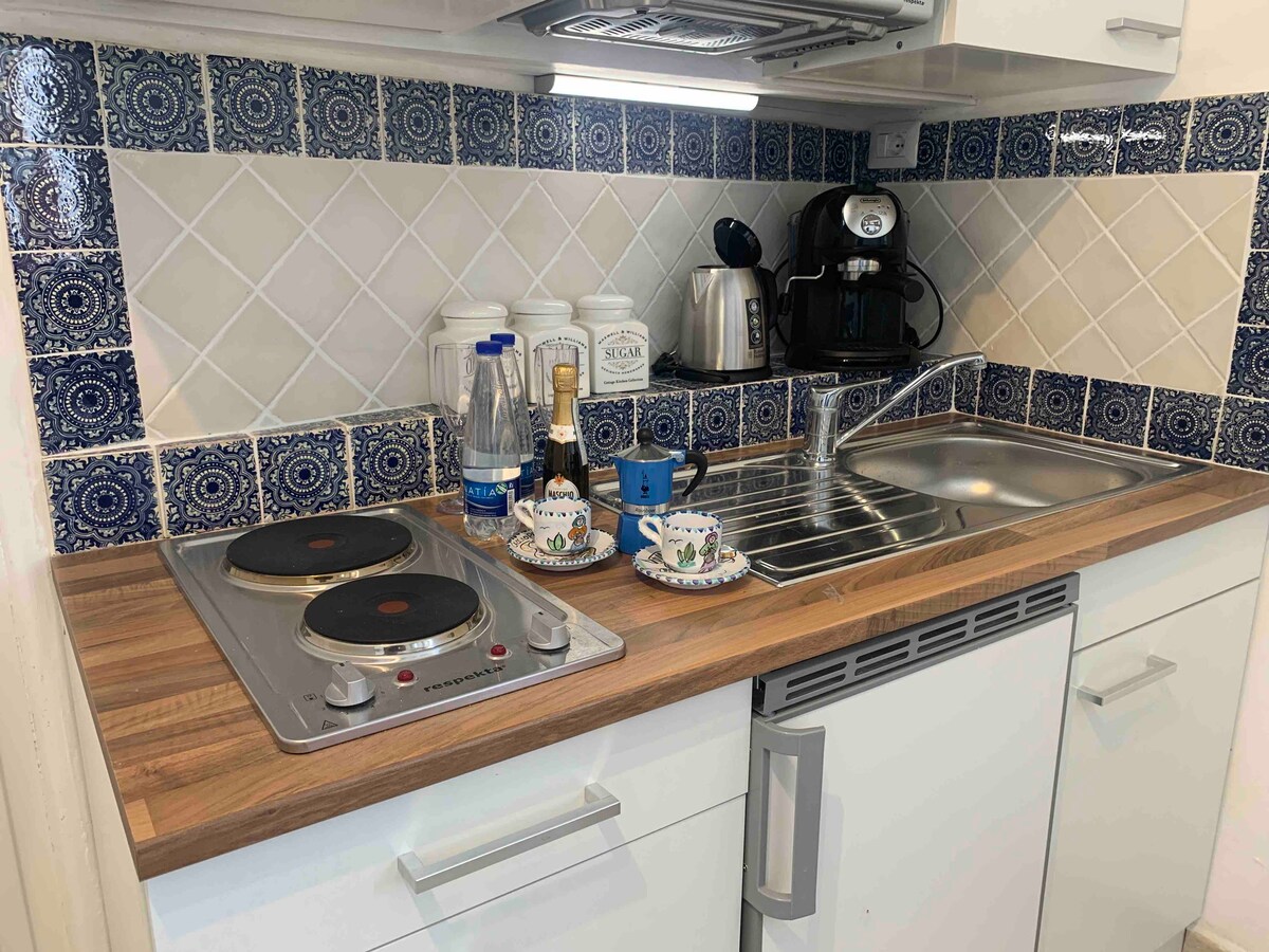 Elegante suite con vista sui faraglioni, l'appartamento indipendente residenziale di lusso. Giardino, terrazzi e vista mozzafiato fanno da cornice all'appartamento composto da camera da letto matrimoniale, zona living con cucina e sala da pranzo, bagno con doccia. nella zona living è possibile utilizzare un comodissimo divano letto matrimoniale a scomparsa. L'intero appartamento è stato recentemente ristrutturato e rinnovato in tutti gli arredi, decori e accessori. Tutto completamente nuovo!