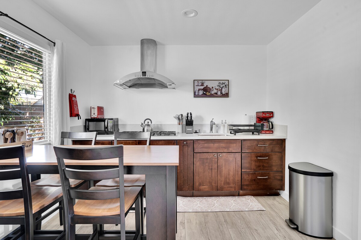 Benvenuti nella 1919 Spanish Casita (la nostra pensione). È stato completato nel 2020 (costruito da zero) e ha una stanza principale, un angolo cottura, una camera da letto e un bagno completo. L'angolo cottura è dotato di una piccola lavastoviglie, cucina elettrica con piano cottura a induzione (con friggitrice ad aria), forno a microonde e frigorifero. Nell'armadio del bagno sono presenti una lavatrice e un'asciugatrice a grandezza naturale. Città di Placentia, permesso n. 2021-01