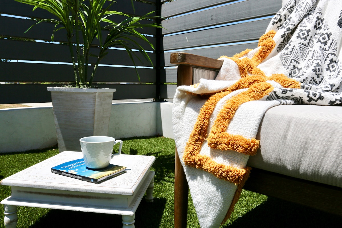 Stile di vita californiano: patio anteriore, spiaggia e ristoranti
