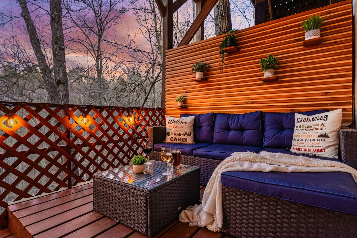*2 miles to Gatlinburg and Pigeon Forge *Pool Table *Hot Tub *Bluetooth Jukebox *28" rain shower for two *Fireplace *King Size Bed *Queen sleeper sofa *55-inch Roku TV *Fast Wi-Fi *Jacuzzi Tub *Keurig and Drip *K cups and creamer *Privacy & Location *Robes *Luxury Bedding *Charcoal grill *Flameless candles *Romance package available($40) rose petals and candles on bed. *Late check out 1pm($40) **Please note the cabin is tucked in the mountains. Some of the roads can be curvy and steep.