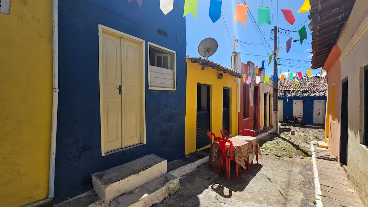 Ubicada a 500 metros del centro, 5 minutos do parque da Muritiba, la casa ofrece un refugio tranquilo, lejos del ruido urbano. Aireada y bien distribuida, cuenta con: • Planta alta: Suite con cama doble, balcón, armario y ventilador. • Planta baja: Baño, dos camas individuales, mesa para cuatro y cocina compacta con fogón, nevera y utensilios. Balcón con hamaca y mesa. Además, tiene internet, estacionamiento, jardín y área de servicio. El terreno es compartido con la propietaria.