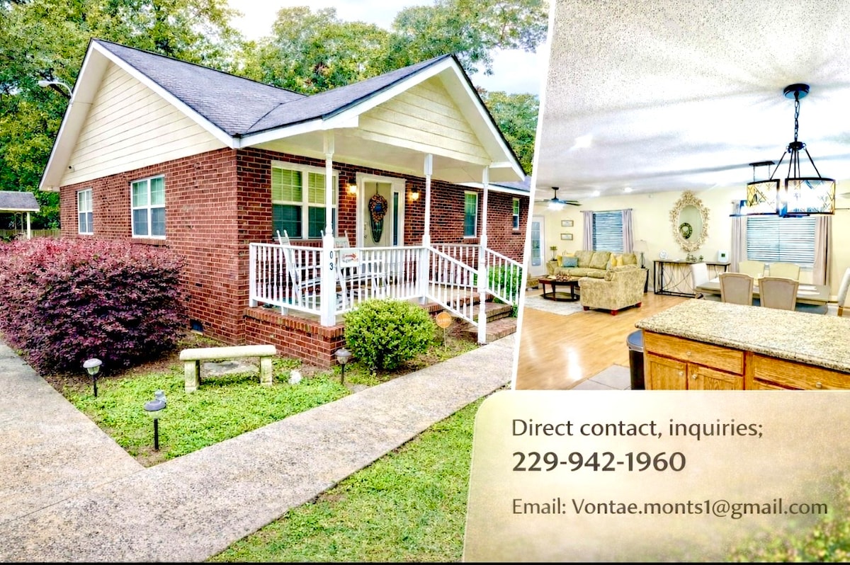 Benvenuti nella casa preferita di Americus! Rilassati e distenditi in questo rifugio spazioso e sereno, situato in posizione perfetta vicino al centro di Americus, a soli 2 minuti dalla Georgia Southwestern State University e dal Griffin Bell Golf Course. Immerso in un quartiere tranquillo e sicuro con un ampio cortile per bambini/adulti e un ampio parcheggio. Comodamente vicino a tutto: Windsor Hotel, Phoebe Hospital, Wolf Creek Winery, Walmart, Shopping Plazas, ristoranti, Reese Park e tutto ciò che il centro di Americus ha da offrire!