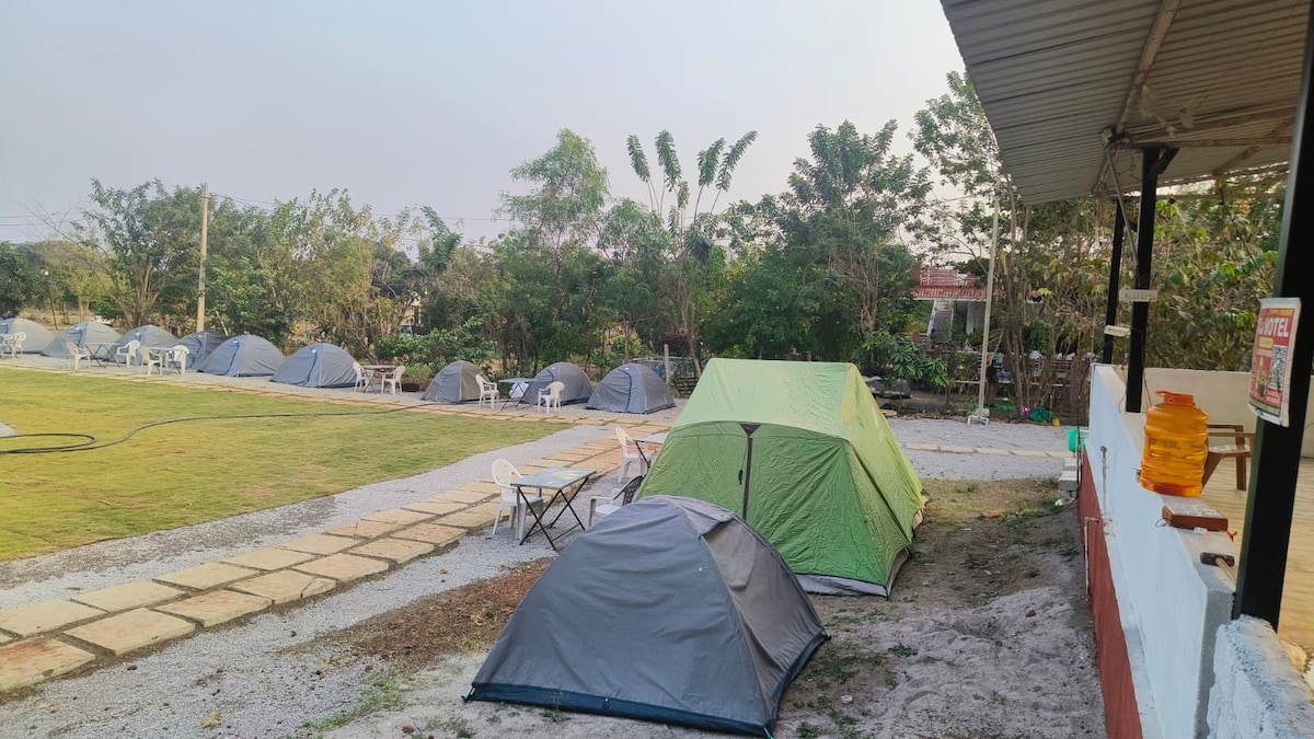 Rs 499 per head Complimentary Breakfast Enjoy the sounds of nature when you stay in this unique place. *Comfortable private tent stay *Farm animals and natural surroundings *Beautiful moon & star-lit nights *Peaceful, quiet environment – perfect to chill and recharge *Ideal for couples, families & small groups Rs 499 per head Pool access is available at extra charges – ₹100 per hour per person.