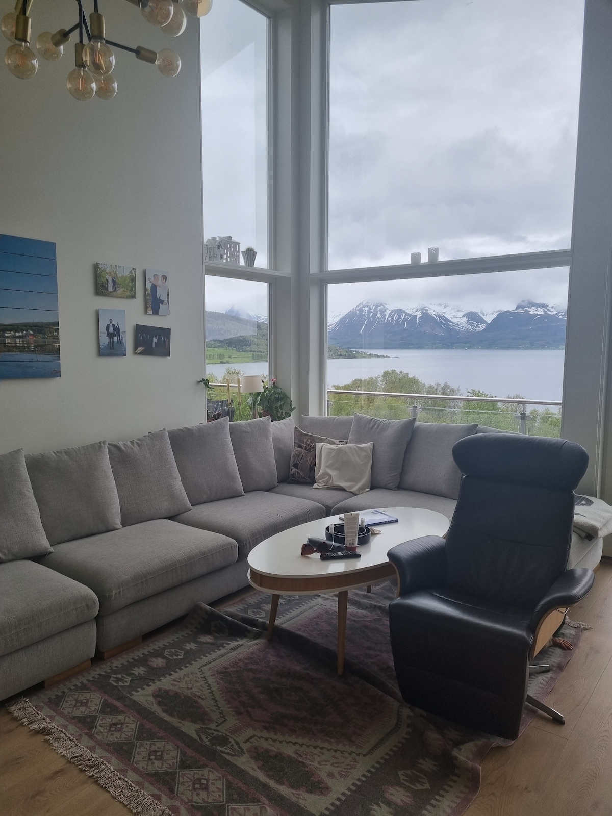 Benvenuti in una fantastica casa indipendente con spazio per 6-8 persone, perfetta per chi vuole vivere il meglio della Norvegia settentrionale! La casa si trova in una zona panoramica con una vista fantastica sul maestoso mare. Qui potrai goderti la tranquillità e il silenzio, vivendo la magnifica natura e le imponenti montagne che ti circondano. La casa dispone di camere ampie e luminose che ti danno sia comfort che spazio per rilassarti con la famiglia e/o gli amici. Benvenuti!!