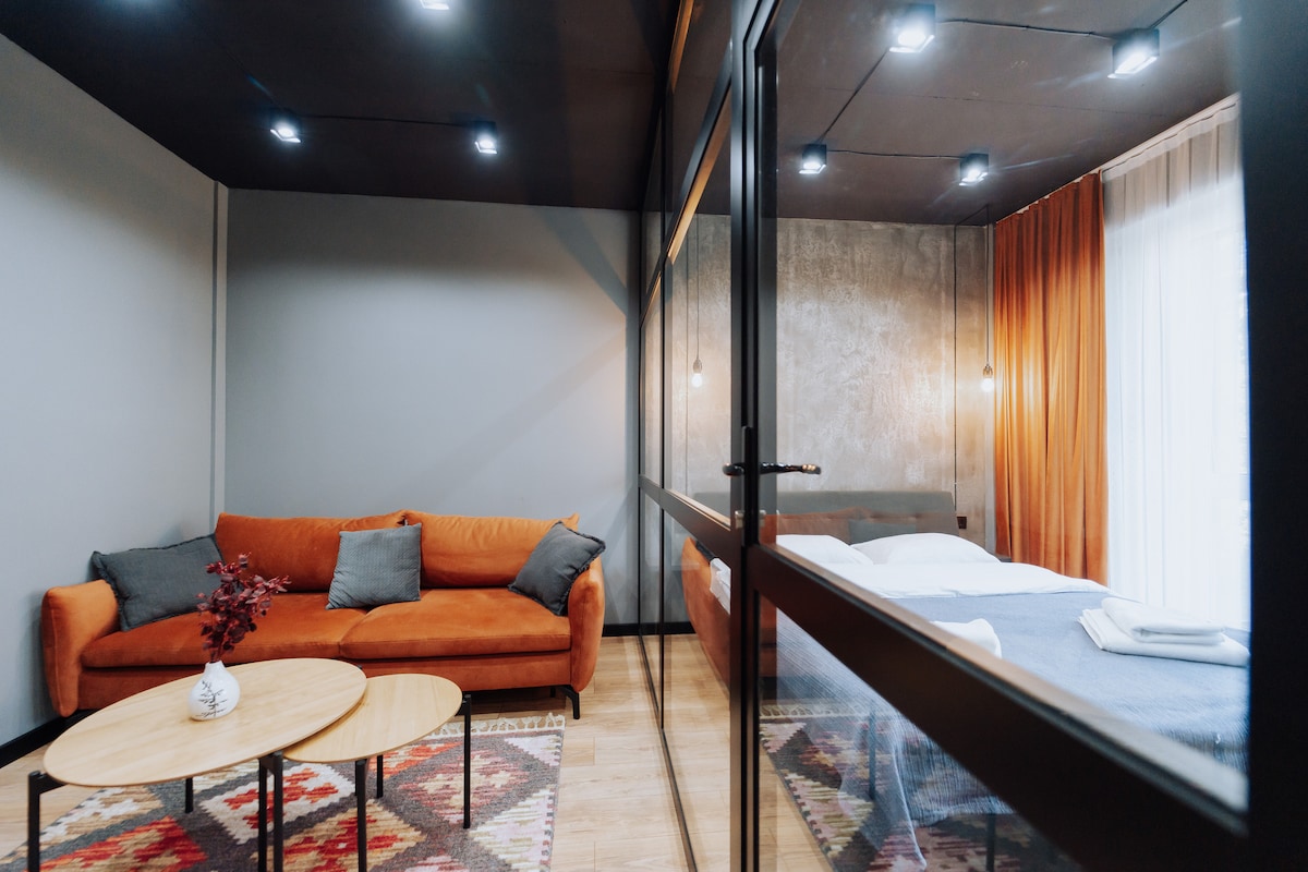 Monolocale moderno e luminoso, situato in posizione centrale, vicino alle principali attrazioni di Chisinau. Offre aria condizionata, un letto comodo e una splendida vista sulla città. Perfetto per chi viaggia in solitaria o per le coppie in cerca di uno spazio accogliente, tranquillo e conveniente. La cucina non è disponibile, ma ci sono molti bar e ristoranti a soli 100 metri dalla casa.