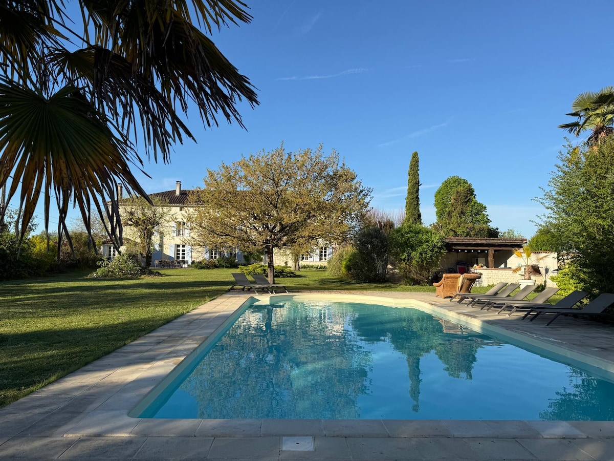 Bienvenue dans notre magnifique Logis datant du XVIIIème Siècle, ancienne fabrique de Cognac. Le lieu a bénéficié d'une rénovation de qualité, tout équipée et confortable. Poussez le porche de la Clé des Champs et entrez dans cet écrin de paradis. Découvrez la splendide orangerie et sa grande porte verrière. Profitez de repas au jardin, au frais sous notre tonnelle de verdure. Nagez dans notre piscine au sel de 20m de long. Détendez vous dans notre salle de musique équipée d'un piano a queue.