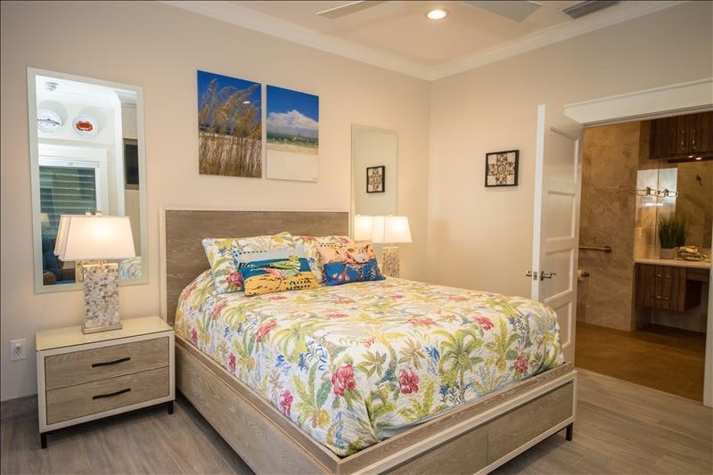 2 Guests - Queen Bed; Marble European Oversized Shower, Dual Wardrobe and Built-in TV, Keurig Coffee Maker, Hairdryer, Outdoor Refrigerator for Drinks, Complimentary Toiletries, Complimentary Coffee and Condiments, Beach Towels, Spa Robes Secure WI-FI, and Cable Rm Temp Control, Fan, Dual Dark/Light Shades, and Complimentary Bicycles.
