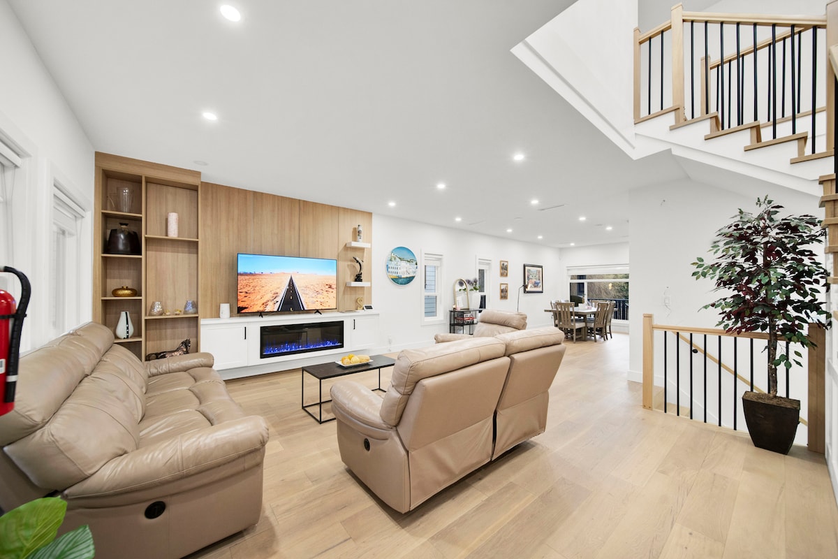 A cozy basement suite offers full kitchen, spacious dining and living room area, retro-modern bathroom. Sleep well on a queen bed with crisp white linens and heavenly pillows. Enjoy free wi-fi and watch your favourite Netflix movies in a huge TV with a warm electric fireplace. Morning coffee and bottles of water are complimentary! Located in a quiet neighbourhood where you can walk on nearby trails. 20 minutes drive from/to Tsawwassen Ferry terminal. 30 minutes drive from/to the YVR airport.