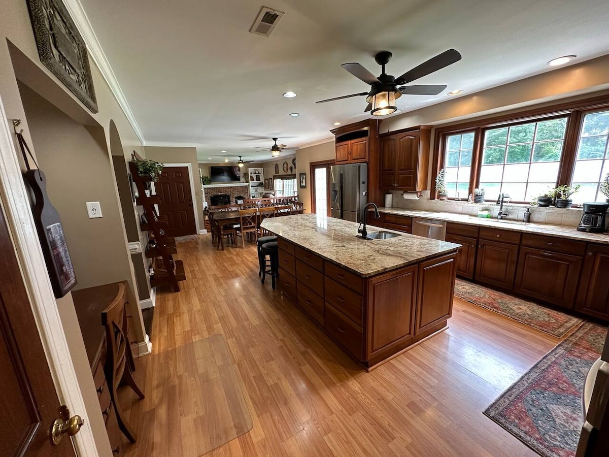 Relax in this spacious, single-level 4BR, 3BA home in Severn, MD—just minutes from Fort Meade, BWI, Arundel Mills & DC. Recently renovated, this modern retreat features 2 primary suites, a fully stocked kitchen, foosball, pool/ping-pong table, fenced backyard, and more! Ideal for families, professionals, or group getaways. No stairs—perfect for seniors. Fast Wi-Fi, smart TVs, washer/dryer, pet-friendly. Quiet, safe neighborhood with easy access to 495, US-50, and train stations.