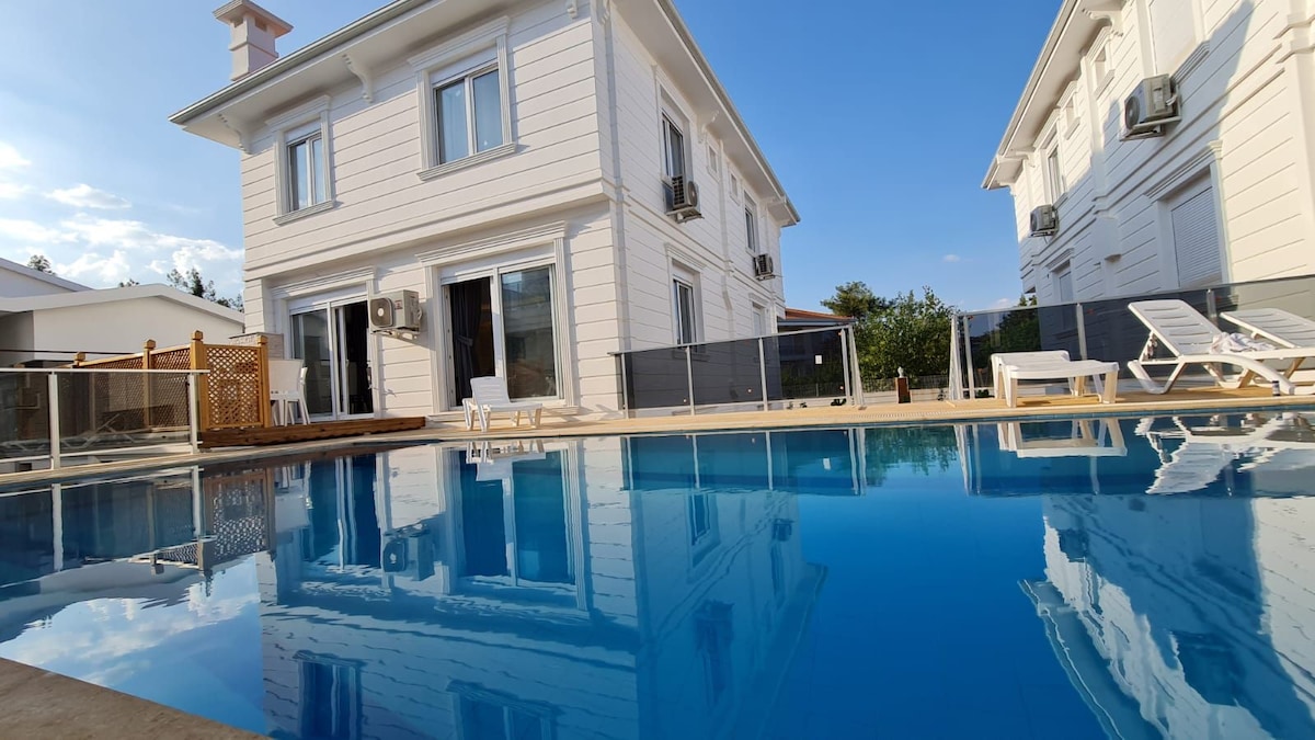 Benvenuto alla villa Kelebek, la nostra casa indipendente con una grande piscina privata e una terrazza. Ogni camera offre letti di qualità alberghiera per dormire benissimo. La cucina è completamente attrezzata con tutto il necessario per mangiare all'aperto. Rilassati nella nostra confortevole zona soggiorno/pranzo con TV satellitare Disney Plus e Netflix. Con ampio spazio per 6-7 persone, questa villa è la destinazione perfetta per una vacanza estiva ad Antalya. Mercato - 320 metri Spiaggia - 2,4 km Land of Legends - 1,9 km