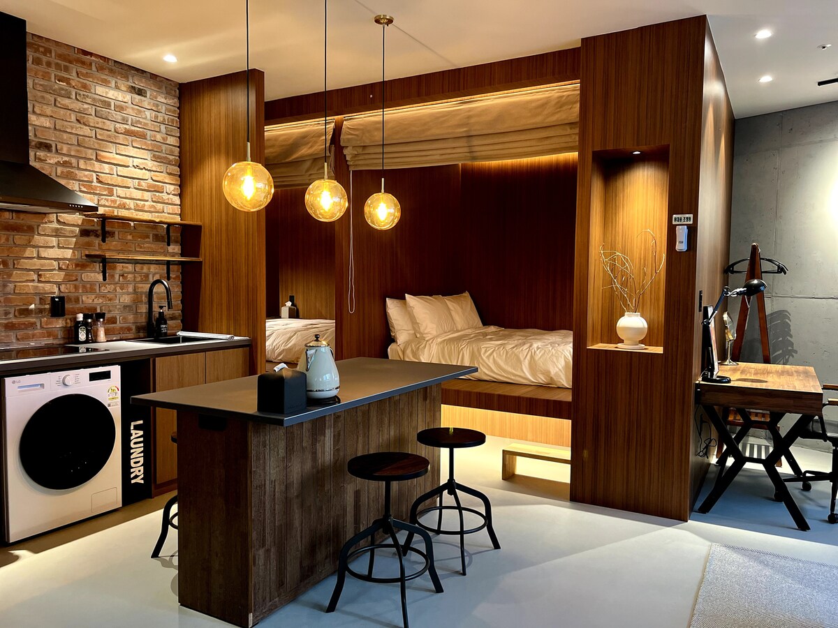 Experience Brooklyn-style luxury in the heart of Seoul at Boutique Hotel FRGE. Our stylish suite accommodates 4 guests with 2 queen beds, a full kitchen, private shower, and dedicated work station. Surrounded by trendy cafes, bars, and Seoul Central Market, it’s perfect for food lovers and explorers. Enjoy stylish furnishings, vinyl turntable, smart TV, and the cozy ambience of your own hidden gem in Seoul. Just a 10-min walk from Sindang (Line 2) and Dongmyo (Line 6).
