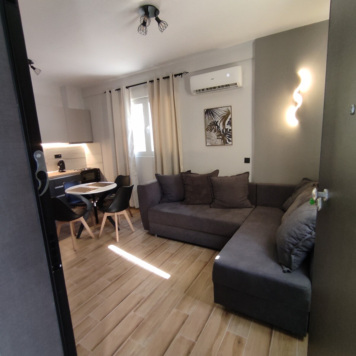 Appartamento completamente ristrutturato con elegante estetica in una delle zone più centrali della città, al secondo piano con accesso dalle scale. Spazioso, caldo, moderno, in grado di rubarti il cuore. È composto da uno spazio open space che comprende un soggiorno-cucina e un letto matrimoniale con materasso in schiuma anatomica. Il divano di alta qualità diventa un letto e lo spazio è in grado di ospitare comodamente 4 persone. In caso di più persone la casa ha un'altra camera da letto.