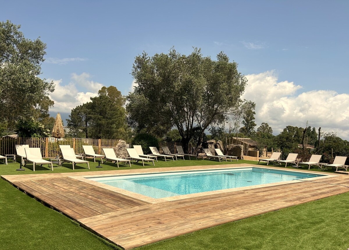 🌊 Il mare inizia dalla tua terrazza. Goditi una vacanza unica sul mare in questa mini villa adatta alle famiglie con accesso diretto alla spiaggia. Un luogo raro in Corsica dove comfort moderno, giardino privato e vista mozzafiato sul mare si uniscono per creare ricordi indimenticabili con la famiglia o gli amici. Qui la vita scorre al ritmo delle onde.