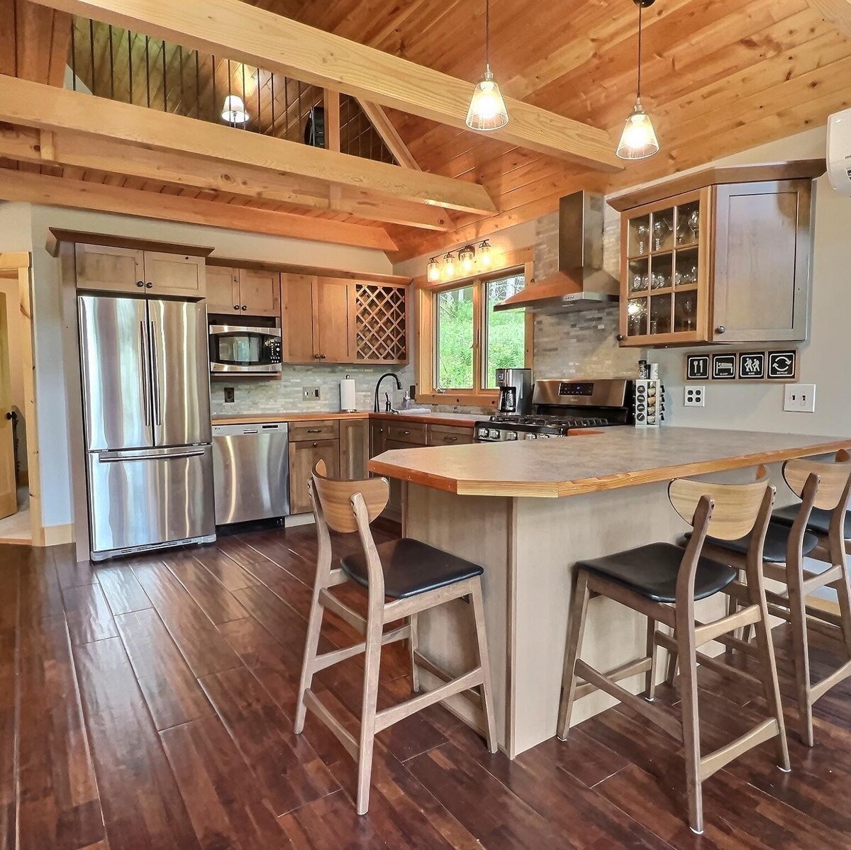 Il nostro chalet nella foresta nordica è perfetto per trascorrere del tempo di qualità in coppia (o con un bambino) o per un rifugio di lavoro (con WiFi ad alta velocità). L'interno in legno è caldo e accogliente. Le finestre a tutta altezza offrono una vista mozzafiato su una valle boscosa. La cucina a pianta aperta e il soggiorno ti tengono nella conversazione mentre cucini. Se preferisci cucinare all'aperto, c'è un braciere con barbecue e tavolo da pranzo all'aperto. A soli 70 minuti di auto da Montreal. Il lago è a 25 minuti a piedi se parcheggi nelle vicinanze.