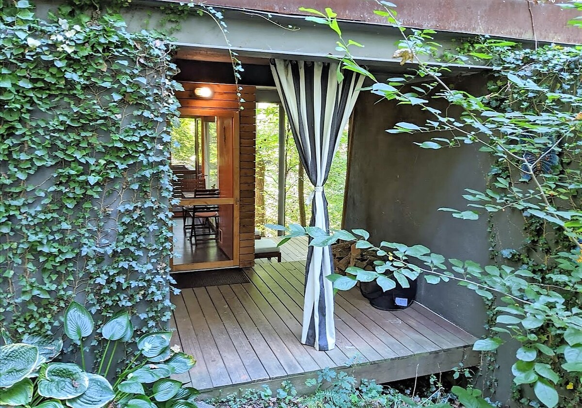 Suite degli ospiti nella casa di un artista e residente di Woodstock di lunga data. Ingresso indipendente dal ponte del 2° piano con vista sul prato e sulle montagne. Lo spazio ha tutto il necessario per un rifugio lontano da tutto: un angolo di meditazione per 2, tappetini da yoga da usare all'interno o all'esterno sul ponte, vasca idromassaggio per immergersi e rilassarsi dopo una giornata fuori e in giro nelle splendide montagne di Catskill. La vasca idromassaggio si trova in un cortile di 1,2 ettari con recinzione per la privacy, quindi i costumi da bagno sono facoltativi (forniamo accappatoi).