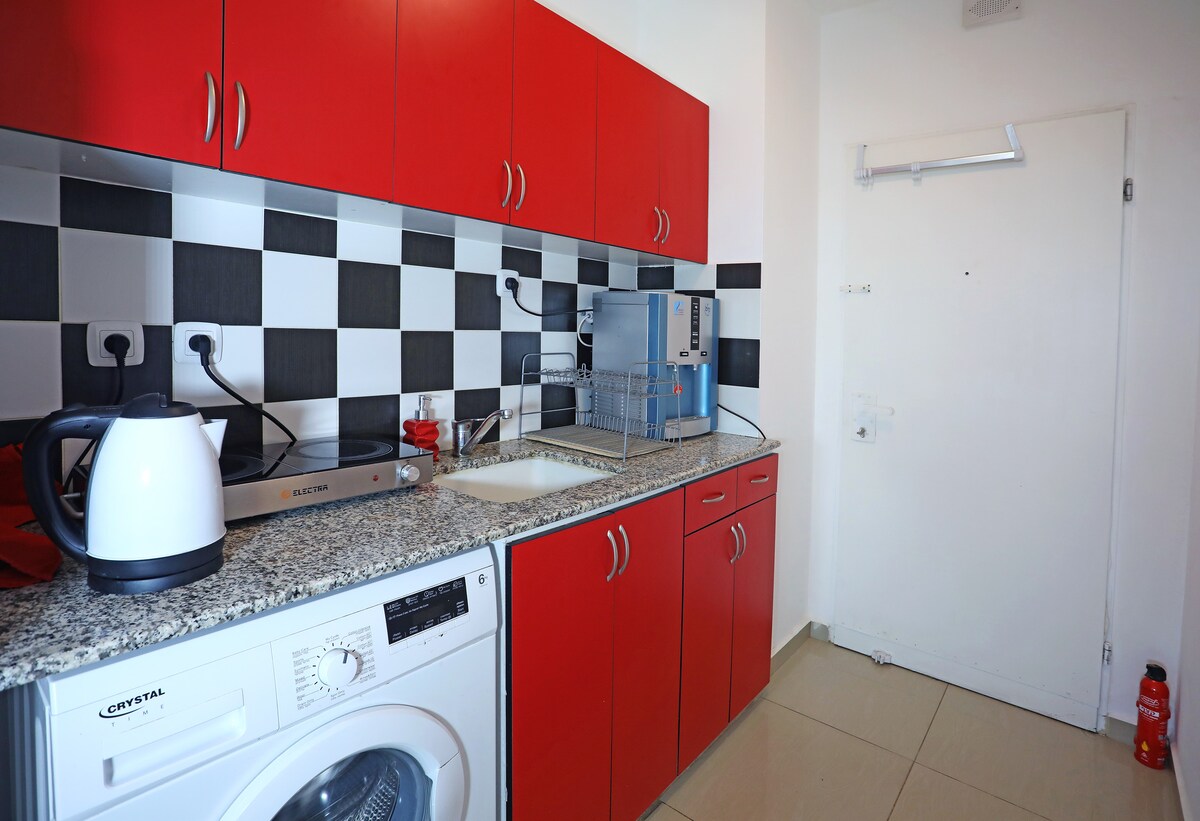 Benvenuto nel tuo paradiso balneare! Questo elegante appartamento con una camera da letto offre una vista mozzafiato sul mare e un accesso esclusivo alla spiaggia. Goditi il caffè mattutino sul balcone, cucina in una cucina completamente attrezzata e rilassati in un'accogliente zona giorno. Perfetto per coppie e viaggiatori solitari in cerca di una vacanza tranquilla. Nel cuore di Ayla, accanto alla B12, con le sue atmosfere divertenti, la musica e le attività. Fai una breve passeggiata fino al Marina Village e goditi il cibo e la vita notturna o gioca a golf. Può ospitare 4 persone con un divano letto matrimoniale.