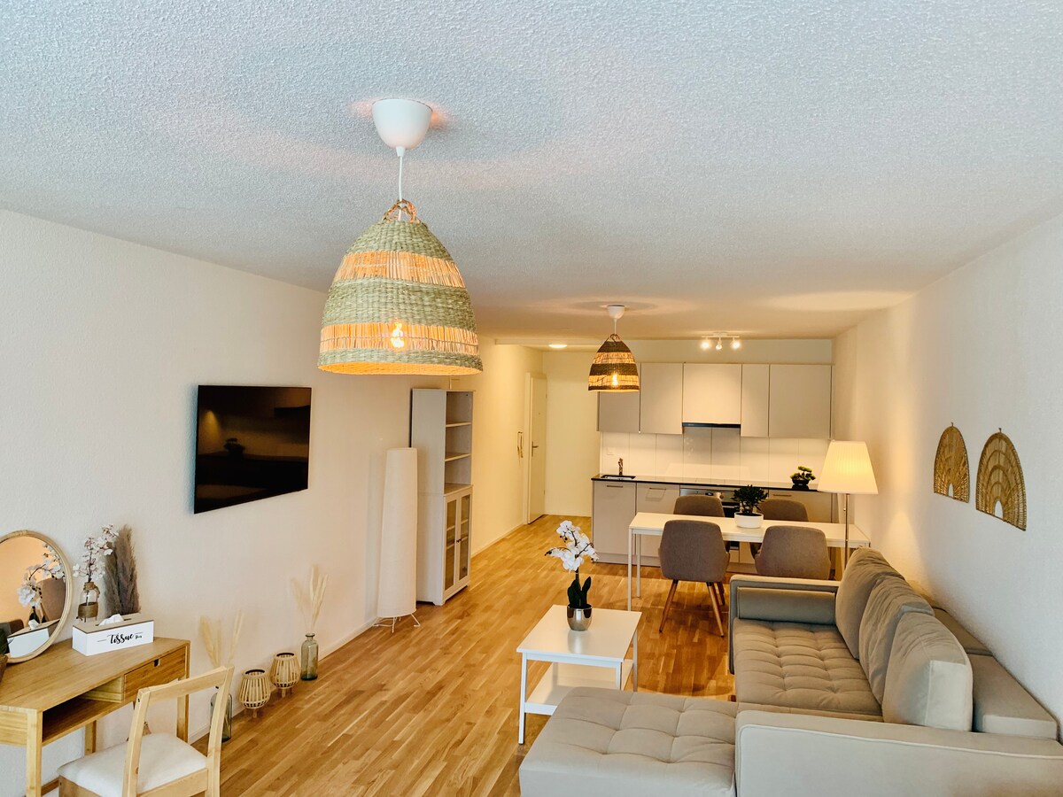 Appartamento moderno e completamente arredato (75 m2) vicino alla Fiera, al Reno, all'Holzpark, all'aeroporto e al porto. Il trasporto pubblico gratuito all'interno di Basilea e una stazione dei tram si trovano proprio intorno alla casa (19 minuti dalla stazione ferroviaria, 20 minuti dall'aeroporto). Trilocale in palazzina di oltre 100 anni con cucina completamente attrezzata e bagno. WiFi, grande TV + Netflix, ferro da stiro, asciugacapelli e caffè sono tutti disponibili. L'appartamento si trova al piano terra.