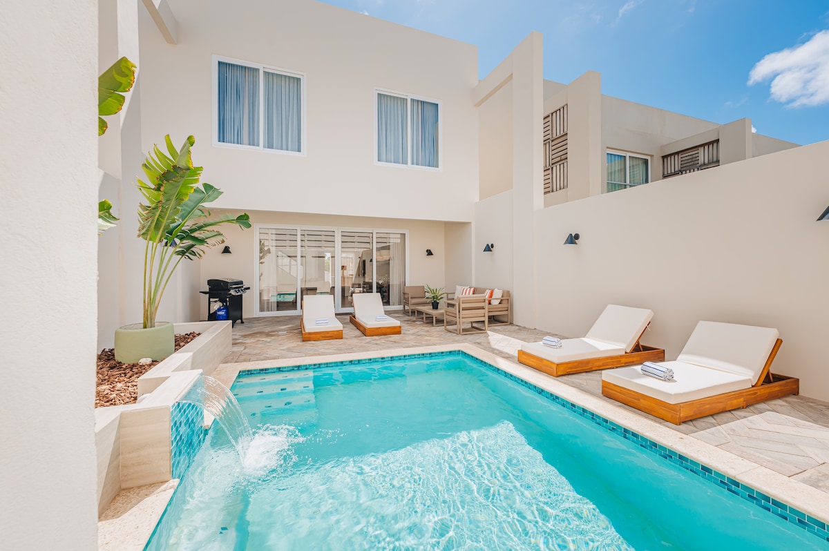 Welcome to our Unique Villa, fully modern, offering Breathtaking sunset views over Palm Beach’s High Rise ✔️ Amazing Views – Sunset & Skyline View of Palm Beach ✔️ 5 min drive to Eagle and Palm Beach ✔️ Infinity Pool, Heated Jacuzzi, Sun Lounges, Seating for 10, BBQ Grill, covered Patio ✔️ Fully Equipped Kitchen (Oven, Cooktop, Nespresso, Airfryer) ✔️ Entertainment - 55” 4K Smart TVs with Amazon Prime Video, Disney+, Netflix ✔️ Beach Essentials – Beachchairs, towels and cooler