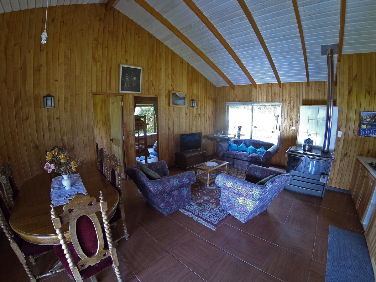 Vieni a rilassarti in campagna, ti invitiamo a conoscere e godere di un luogo tranquillo, in qualsiasi momento dell'anno. Cottage molto ben attrezzato per 6 passeggeri $80.000 a notte. *uso della vasca idromassaggio 25.000 pesos al giorno senza limite di ore. Animali da fattoria, contatto con la natura, con una bella vista. Siamo a 40 minuti dal Parco Nazionale Conguillio (ingresso nord Los Paraguas), sci Araucarias, Laguna Quepe, a due ore e mezza da Villa Pehuenia, Argentina.