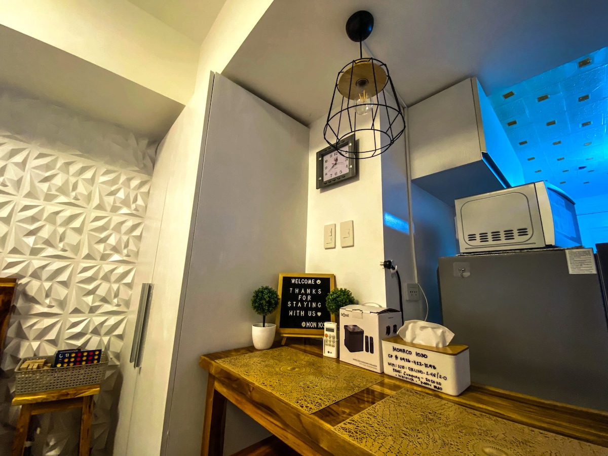 Ti diamo il benvenuto nel nostro rifugio ispirato allo stile Japandi, dove la semplicità incontra il comfort, ad Angeles, Clark. Questo spazio sereno offre un rifugio riposante per chi viaggia da solo o in coppia e cerca un soggiorno tranquillo. Che tu sia qui per lavoro o per svago, il nostro rifugio tranquillo promette un soggiorno indimenticabile. Inoltre, la nostra posizione privilegiata ti permette di raggiungere facilmente Hilton, Midori, Marriott, Royce, Swissotel e casinò, ristoranti, caffetterie, un campo da golf e l'aeroporto di Clark.
