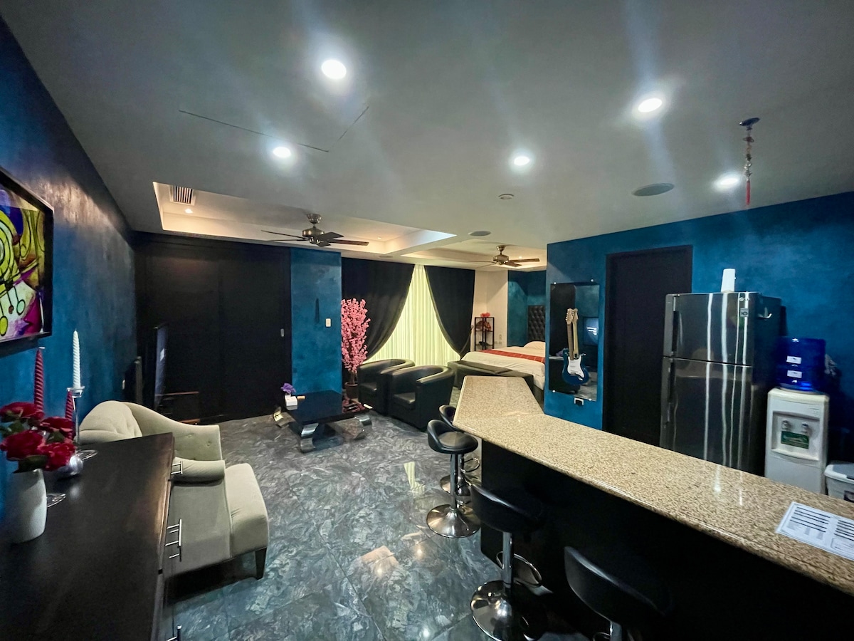 Appartamento situato all'interno del Luxury Penthouse Hotel. L'unità si trova al 9° piano ed è lussuosamente arredata con mobili raffinati, illuminazione d'atmosfera, letto king size, doccia a pioggia, frigorifero di grandi dimensioni, piano cottura, acqua potabile gratuita, aria condizionata, audio surround, lettore DVD, TV via cavo con schermo da 55" e WiFi. L'hotel è inoltre supportato da un generatore, quindi non rimarrai mai senza corrente.