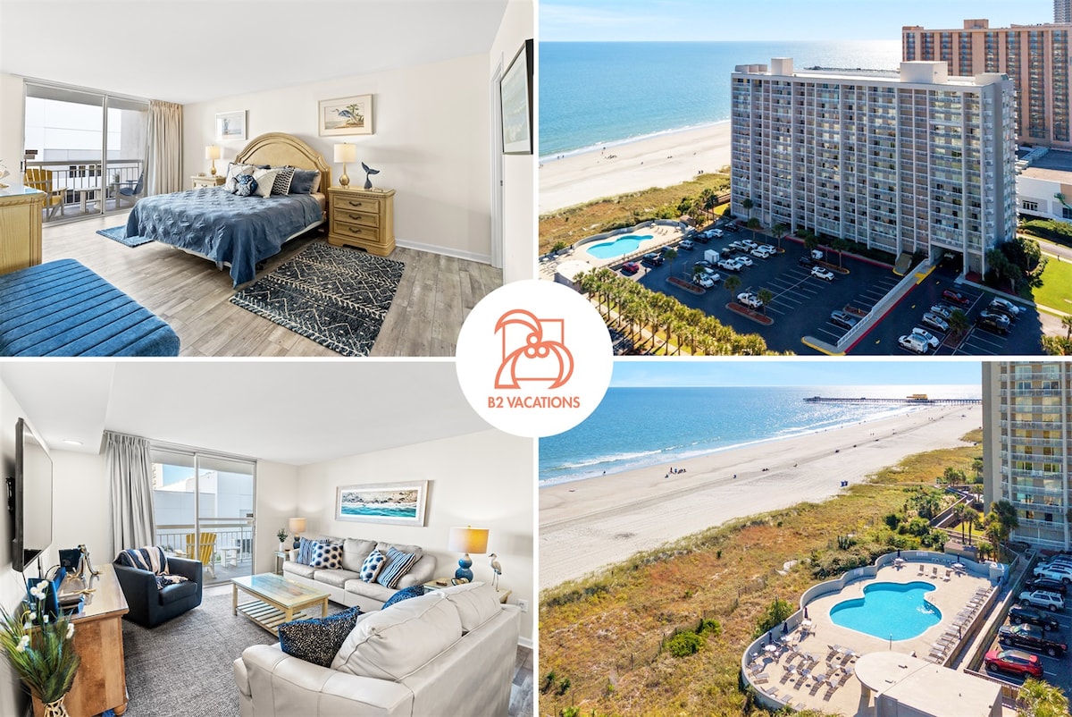 Siamo felici di dire: le spiagge, le piscine e i ristoranti sono aperti! Questo appartamento è professionalmente pulito!! Caratteristiche principali di questo condominio includono: * Oceanfront One Bedroom at Sandy Beach Resort * 1 letto king size, con divano letto, può ospitare fino a 4 persone, lenzuola incluse * Bagno privato * Cucina completamente attrezzata, con tavolo da cucina * Wi-Fi GRATUITO ad alta velocità * Parcheggio GRATUITO * Piscine interne ed esterne, fiumi pigri e vasche idromassaggio * A pochi passi dal molo della 2nd Avenue e dal parco divertimenti Family Kingdom