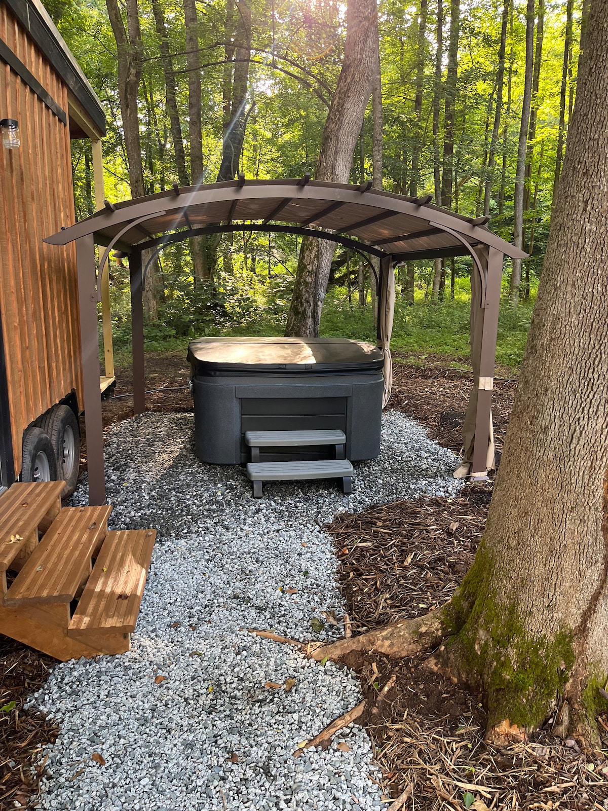 Rilassati in questo piccolo spazio romantico e rustico! Questo piccolo posto per una vacanza è stato costruito appositamente per gli ospiti in affitto a breve termine! È splendidamente arredato, molto accogliente e si trova proprio all'interno dei boschi con pascoli e un piccolo laghetto di fronte. Il Hot Tub Hideaway dista solo mezzo miglio dalla I-74, 10 minuti dal centro di Winston Salem e 15-20 minuti da Greensboro o High Point. È il luogo ideale per una vacanza e rilassarsi pur essendo super comodo per tutto il resto!