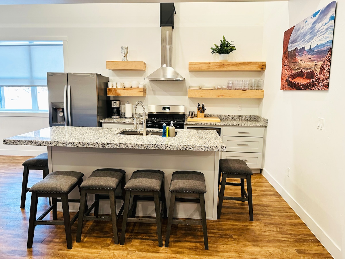Soggiorna in centro in uno dei migliori alloggi di Moab, amato dal 1% degli ospiti, in posizione perfetta per l'avventura e la comodità. Raggiungi a piedi i ristoranti, i negozi e i negozi di abbigliamento di Main Street, poi raggiungi Arches e Canyonlands in pochi minuti. Gli ospiti amano il design elegante ispirato al deserto, la pulizia eccezionale e il self check-in senza intoppi. Dopo lunghe giornate di escursioni, gite in bicicletta o esplorazioni, rilassati con una rilassante vasca idromassaggio sotto i cieli aperti del deserto. Questo soggiorno combina posizione, comfort e atmosfera per un'esperienza a Moab indimenticabile