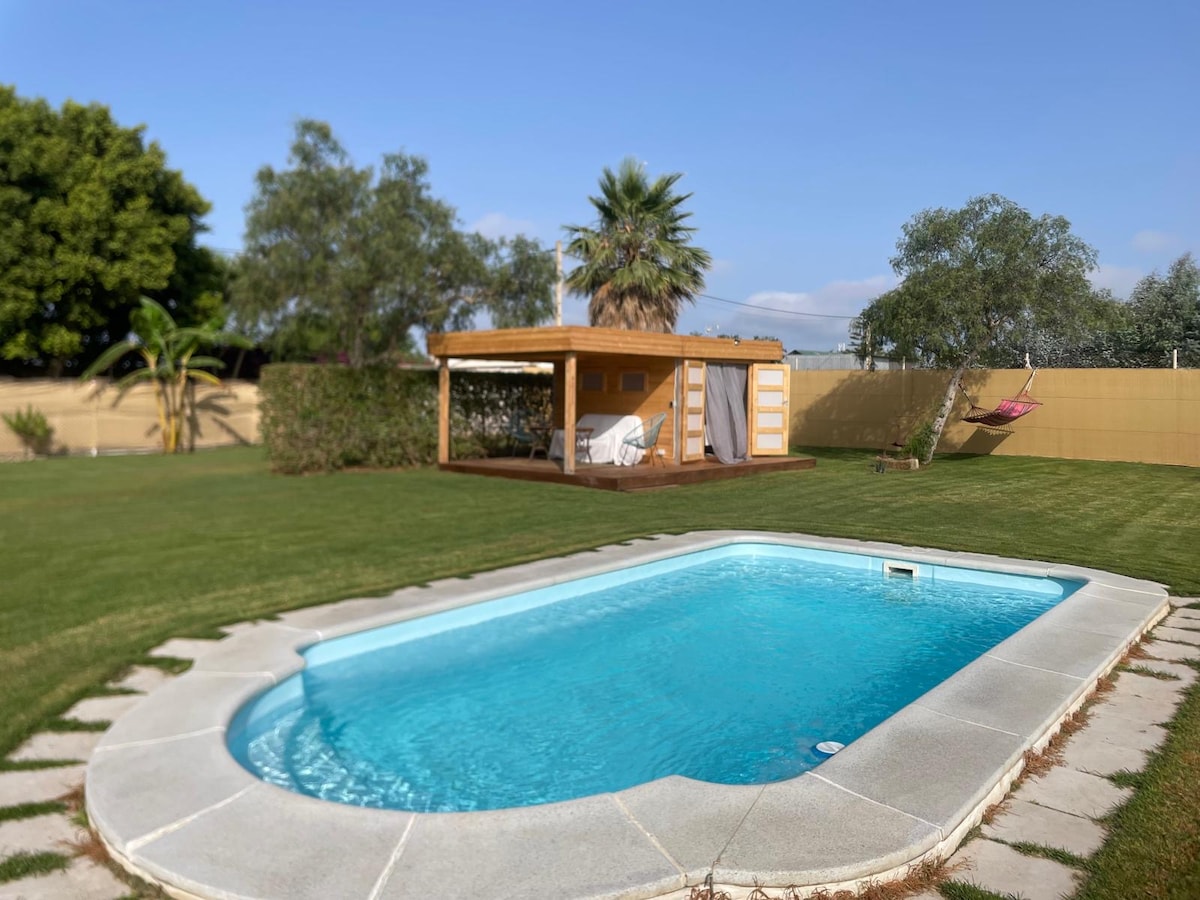 ☀️ RELAX Y PRIVACIDAD EN CHIPIONA: Tu oasis de 900m² 🌴 Disfruta de la tranquilidad con todas las comodidades. Habitación de madera con Aire Acondicionado,televisor, ventilador y porche de 12m². 💦 Exterior de ensueño: Piscina privada 3x6 , amplio jardín y chiringuito con barbacoa y cocina equipada. Baño con agua caliente. 🐾 Petfriendly. 🔒 Parcela de USO EXCLUSIVO y totalmente vallada. 📍 Acceso por camino compartido, pero estancia 100% independiente y privada. ¡Tu refugio ideal!