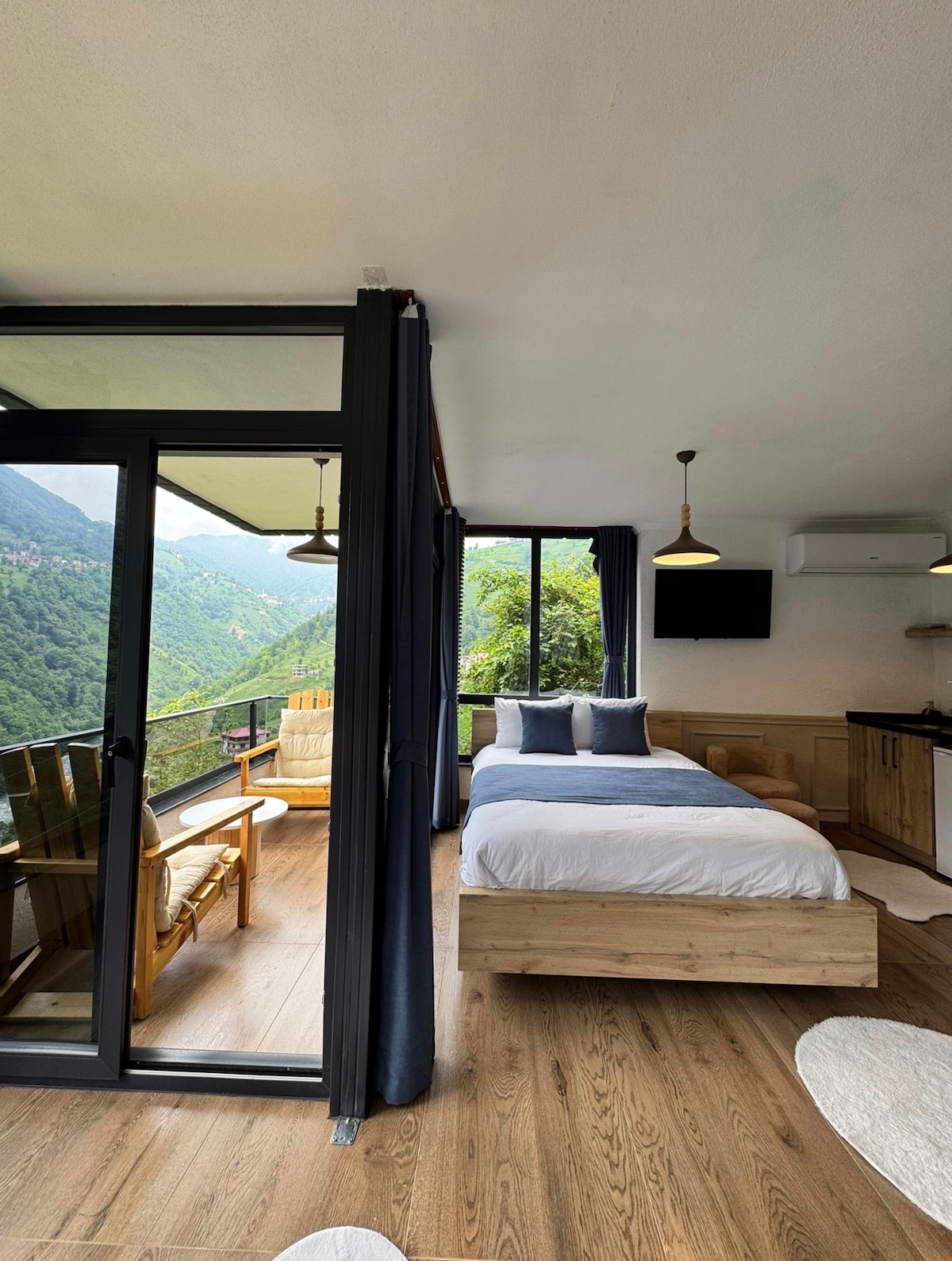 Questo bungalow privato con vasca idromassaggio, situato nella natura unica del quartiere Rize Ardeşen, a soli 4 km dal mare e vicino all'aeroporto, combina comfort e tranquillità. Circondato dalla natura verde del Mar Nero, il palazzo è ideale per chi vuole essere vicino alla vita cittadina e per chi vuole stare da solo con la natura, in quanto si trova in posizione centrale ma anche in un luogo tranquillo. Offriamo un ambiente spazioso e tranquillo con una grande terrazza con vista panoramica e dettagli in legno all'interno