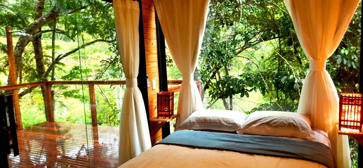 Ideale per un soggiorno tranquillo, con una vista mozzafiato. Posto super romantico per festeggiare date speciali come luna di miele, proposte di matrimonio, ecc. Ti sentirai in cima ai grandi alberi, che sono frequentati da un'immensa varietà di uccelli. La costruzione è stata progettata per consentire di avere la vista degli alberi e delle montagne da qualsiasi stanza, con pareti di vetro. Contempla il cielo stellato nel comfort del divano, sorseggiando un vino, riscaldato dalla moderna stufa.
