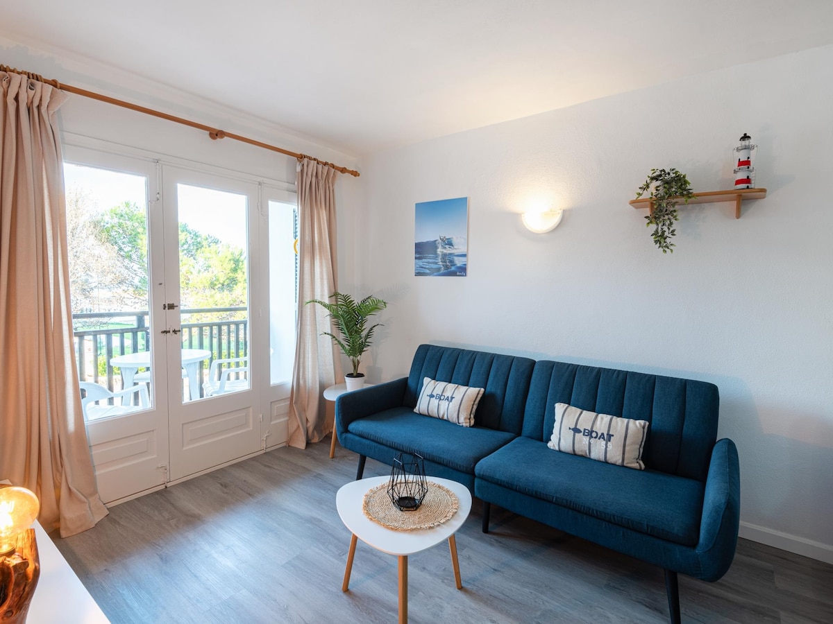 Acogedor apartamento de 40 m² con 2 terrazas privadas y vistas al mar, ideal para relajarse en Menorca. 1 habitación, 1 baño, salón con cocina integrada y 2 camas de matrimonio (para 4 personas). Perfecto para parejas o familias pequeñas. Situado en un complejo familiar tranquilo con zonas verdes, cerca de supermercados, parada de autobús y GR. A solo 200 m de la bahía de Arenal d’en Castell, disfruta de sol, mar y actividades al aire libre. ¡Vacaciones inolvidables con todas las comodidades!
