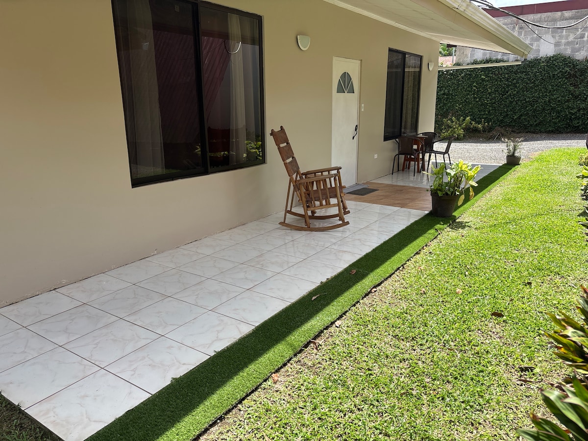 Relájate en este espacio tan tranquilo y elegante. A 1 km del centro de Fortuna y a 300 m del Salto. Camino a la catarata de la Fortuna. El loft cuenta con terraza deck, piscina, jardín, un cuarto con cama king, baño, cocina totalmente equipada, centro de lavado, parqueo privado, AC, acabados de lujo, vistas extraordinarias hacia el volcán y en contacto con la montaña, ideal para citas románticas, relajarse y pasarla bien lejos del bullicio de la ciudad, pero a solo 2 min del centro de Fortuna.