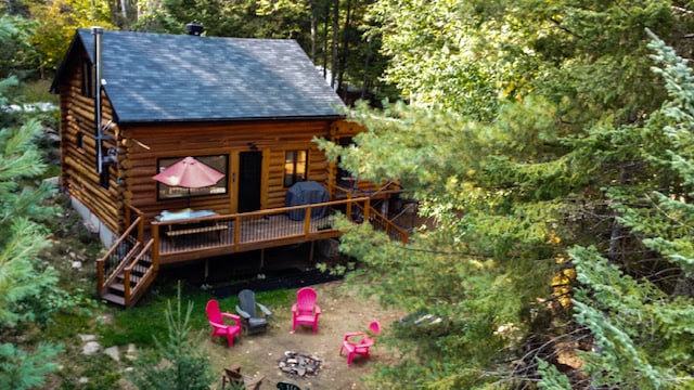 Fuga serena in una baita di tronchi con vista sulla baia