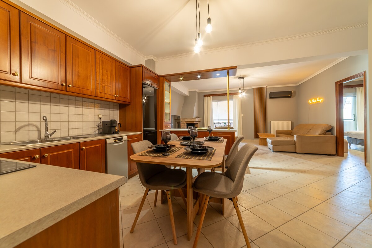 SYRIOS House & Apartments Newly renovated modern 100m² apartment close to the center of Nafplio. With three bedrooms and a full equipped kitchen with oven, microwave, coffee machine, toaster, boiler etc. A big living room with a big sofa, sofa bed and a 65" smart tv. Big bathroom with towels, papers, shampoo, conditioner and shower gel. Everything you need is close to the apartment (supermarket,pharmacy,café, bakery, shops etc.). Free and easy parking in the street.