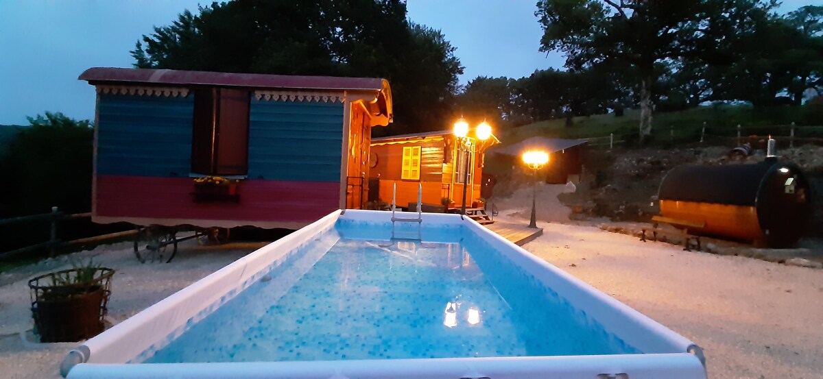 Gorgeous Gypsy wagon in Montbrun Bocage.