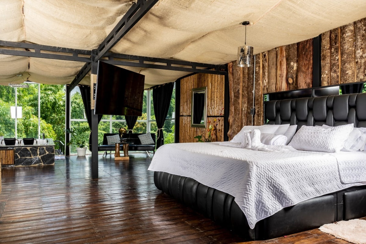 Disconnect from your worries in this spacious and serene space. Coffee farm where you can connect your mind and body with nature, enjoy a pleasant climate and beautiful sunsets. Perfect Place To rest and disconnect from everyday life you will be able to spend unforgettable moments You will enjoy the birds singing, it is ideal for couples - It has a transparent Dome Glamping, Jacuzzi, outdoor shower, Breakfast 🍳 Included.