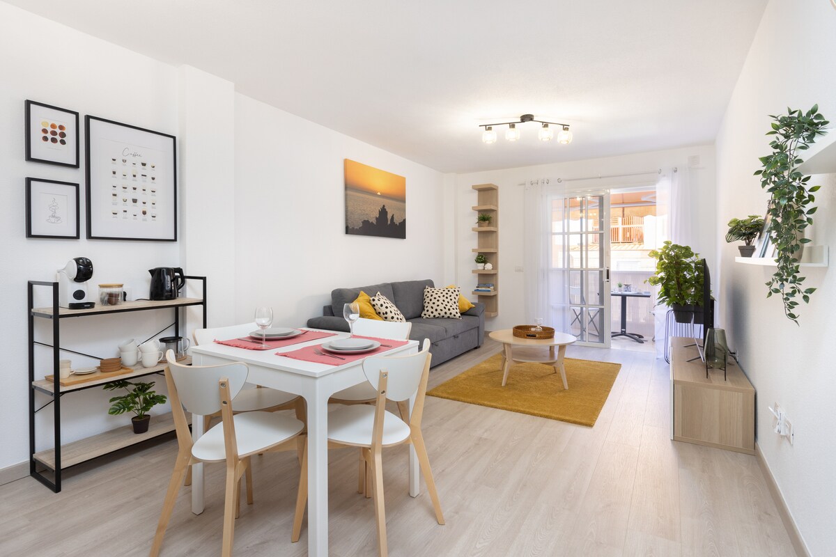 Accogliente e completamente attrezzata Olas Suite fronte mare, con accesso diretto alla spiaggia 10m, ideale per gli amanti del mare. Molto luminosa e con una vista incredibile. Zona molto tranquilla e turistica del sud di Tenerife. Noleggio biciclette, Escursioni, Supermercato, ristoranti, farmacia, panetteria, Centro commerciale Rosa Center, molto vicino.